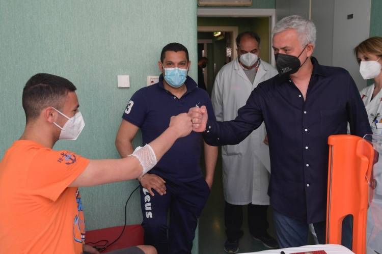 暖心!穆里尼奥造访罗马儿童医院,为孩子们加油打气