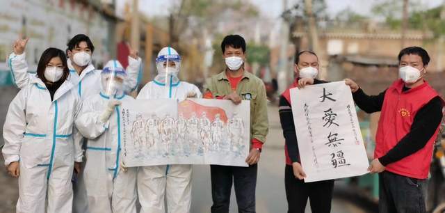 志愿者赵胜利赠送医护人员书画作品