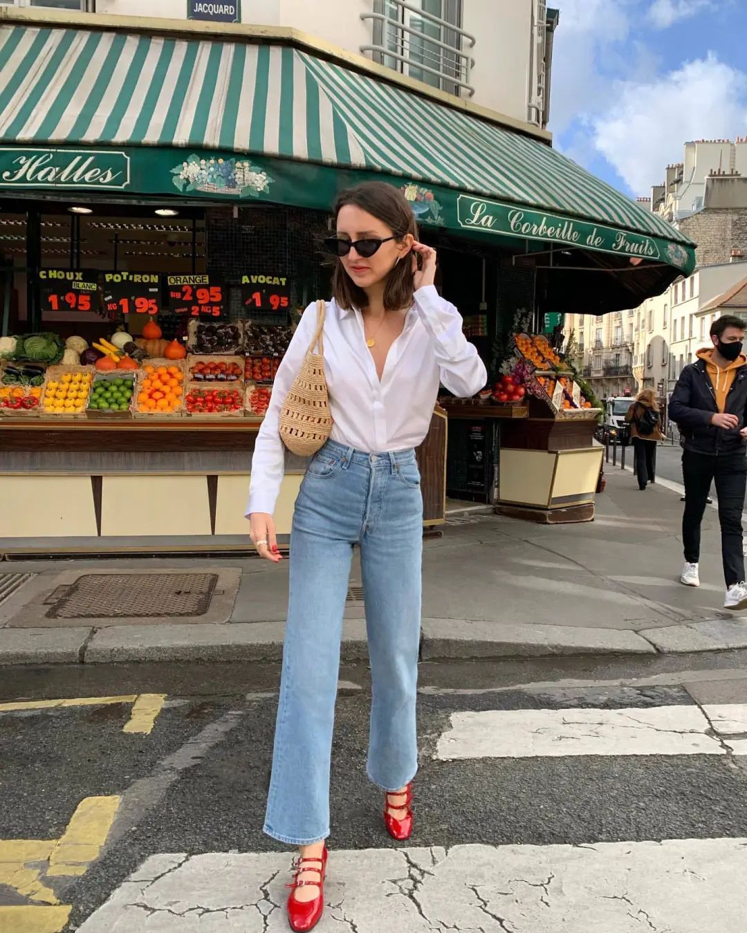 不知道穿什么的时候,白衬衫+高腰牛仔裤+玛丽珍鞋=刚柔并存绝对会是优雅永不过时的拍档组合。